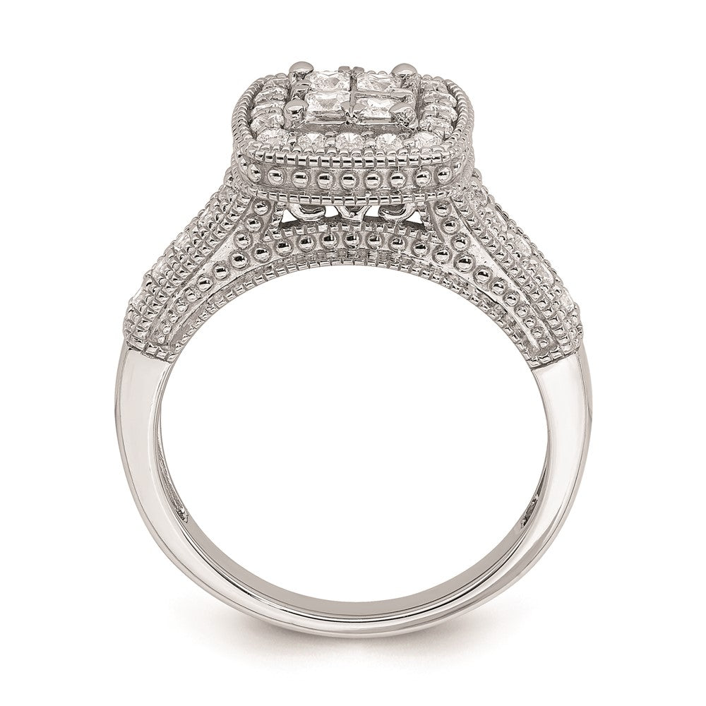 14K White Gold Square Halo Cluster 5/8 carat Princess/Round Diamond Complete Engagement Ring