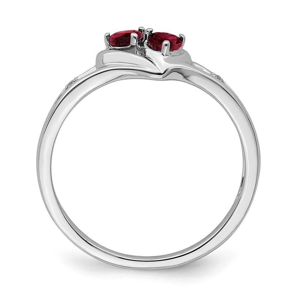 10k White Gold Created Ruby and Diamond 2-stone Heart Ring