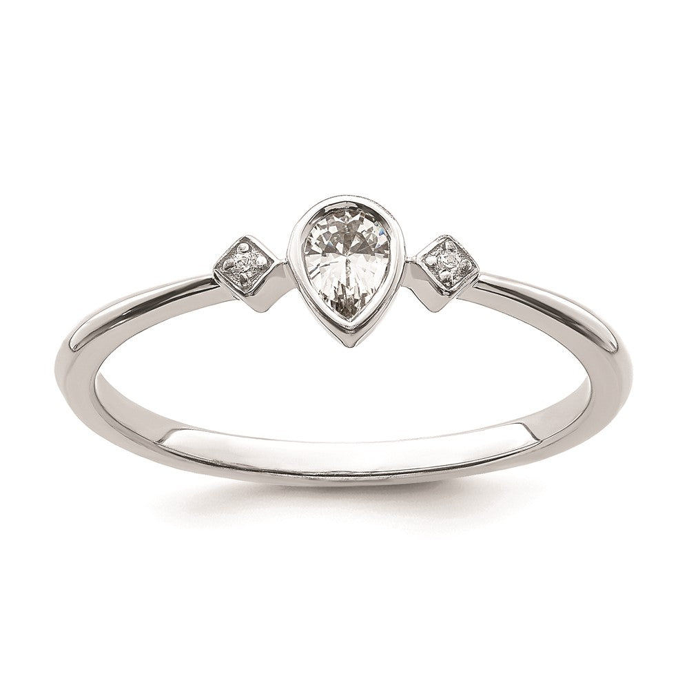 14k White Gold Petite 3-Stone 1/15 carat Pear Diamond Complete Promise/Engagement Ring