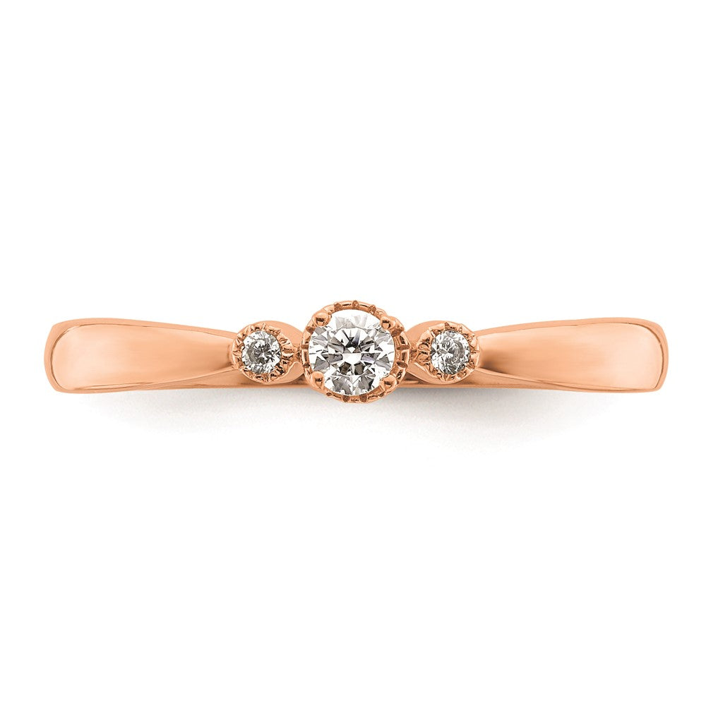 14k Rose Gold Beaded Edge Petite 3-Stone 1/15 carat Round Diamond Complete Promise/Engagement Ring