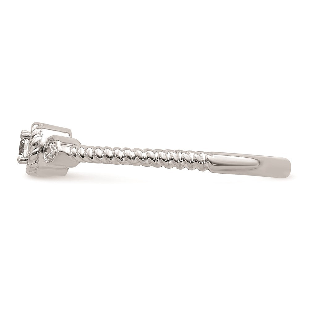 14k White Gold Roped Band Petite 3-Stone 1/15 carat Round Diamond Complete Promise/Engagement Ring