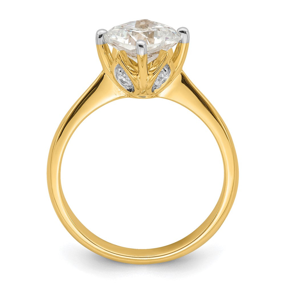 14k (Holds 2 carat (7.60 mm) Cushion-cut) 4-Prong with 1/15 carat Diamond Leaf Design Semi-Mount Engagement Ring