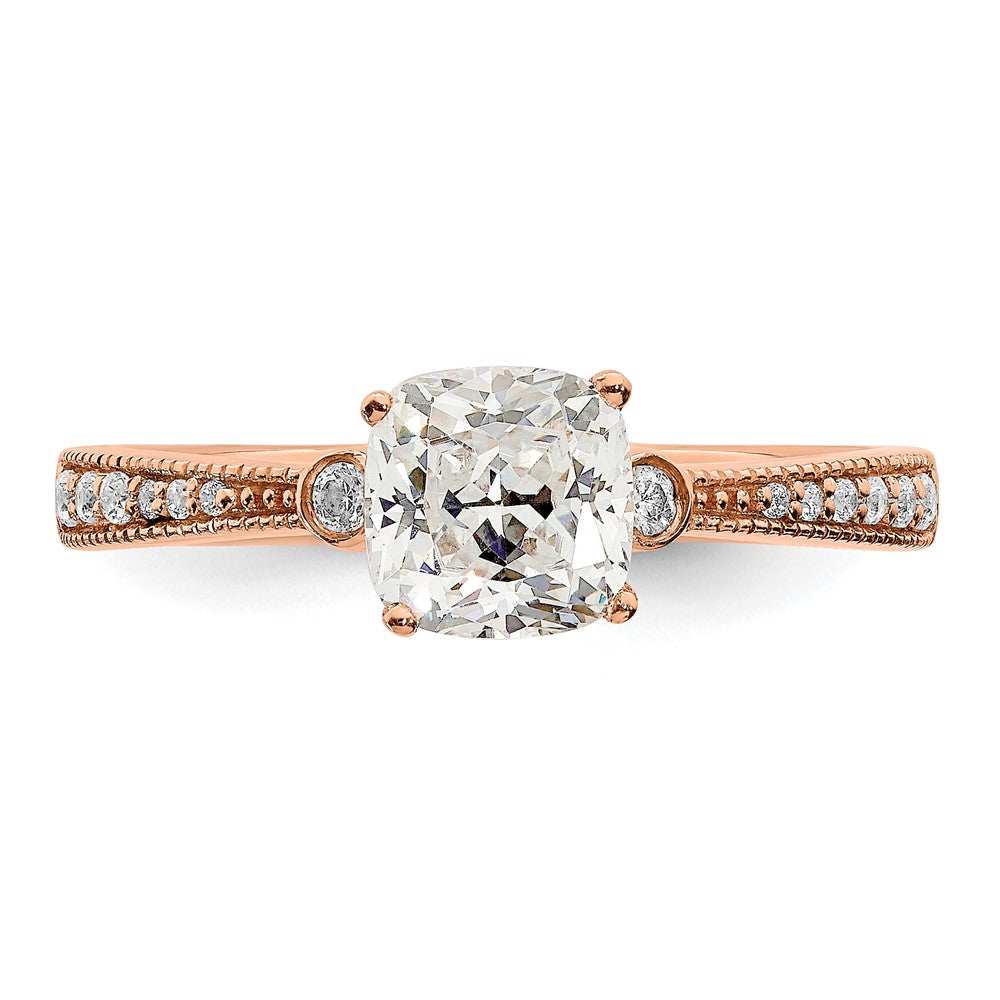14k Rose Gold (Holds 1 carat (6.00mm) Cushion Center) 1/15 carat Diamond Semi-Mount Engagement Ring