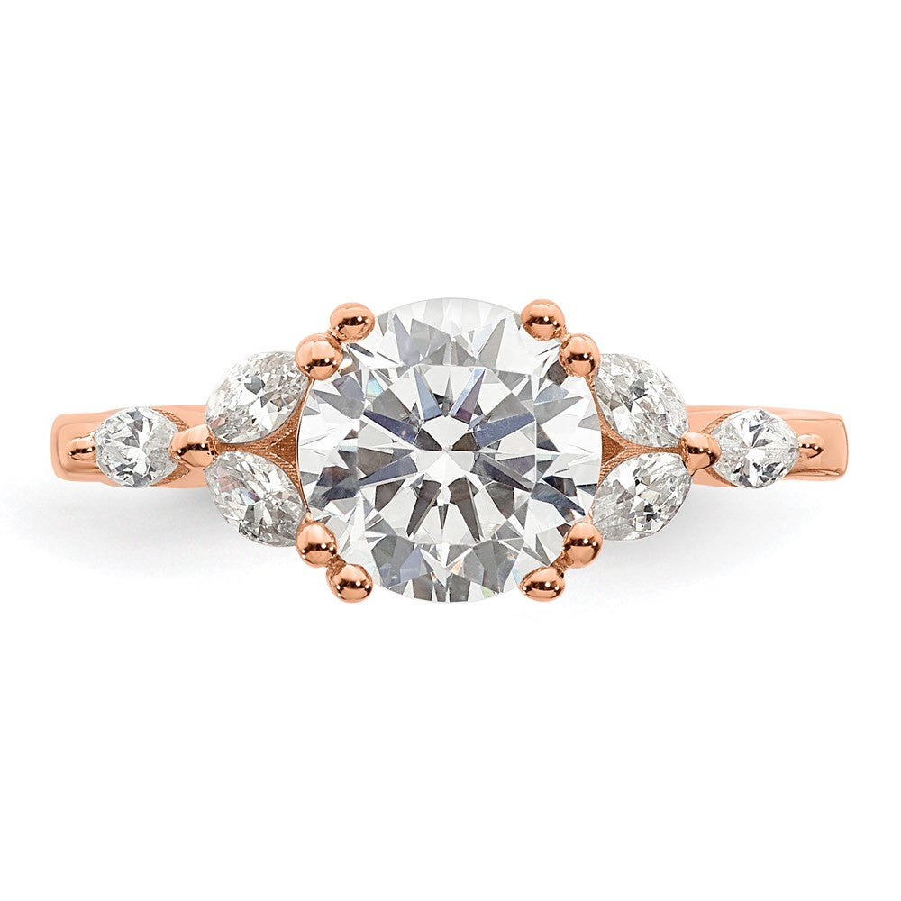 14k Rose Gold (Holds 1.5 carat (7.5mm) Round Center) 1/5 carat Marquise Diamond Semi-Mount Engagement Ring