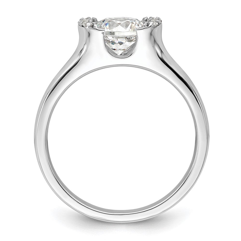 14k White Gold (Holds 1 carat (6.40 mm) Round) Half-Bezel with 1/20 carat Diamond Semi-Mount Engagement Ring