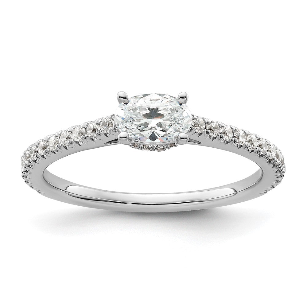 14k White Gold 3/4 carat Lab Grown Diamond VS/SI+ G+ East-West Oval Complete Engagement Ring