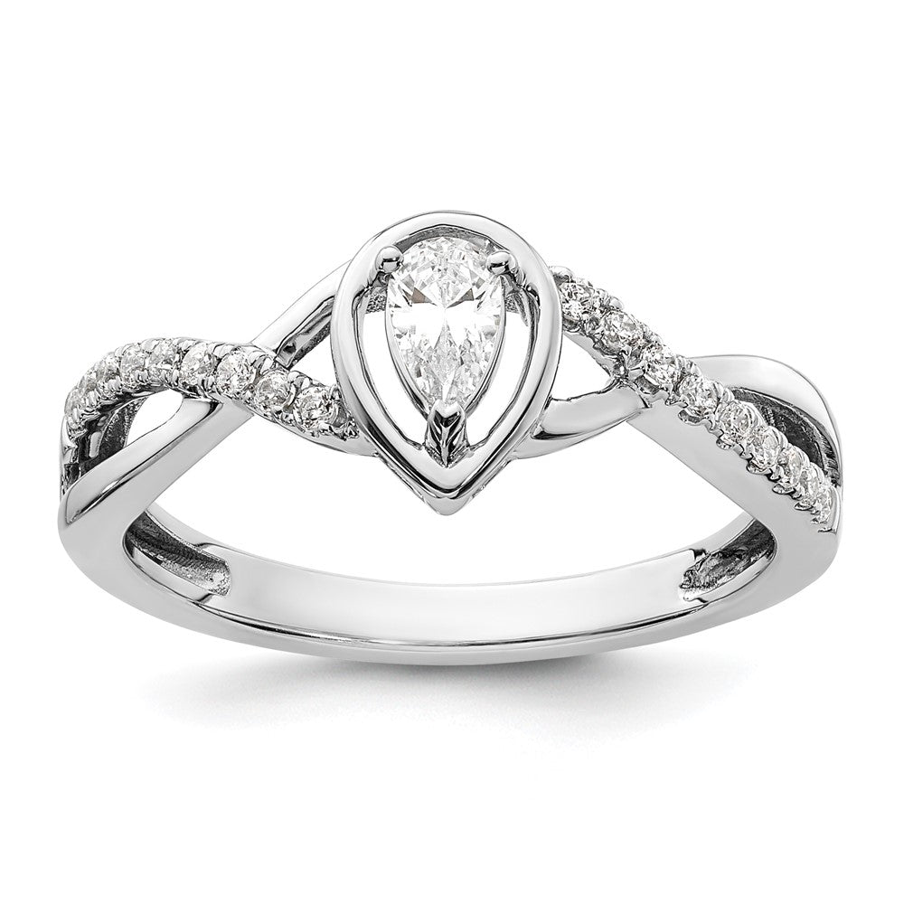 14k White Gold Pear Ctr Diamond Complete Promise/Engagement Ring