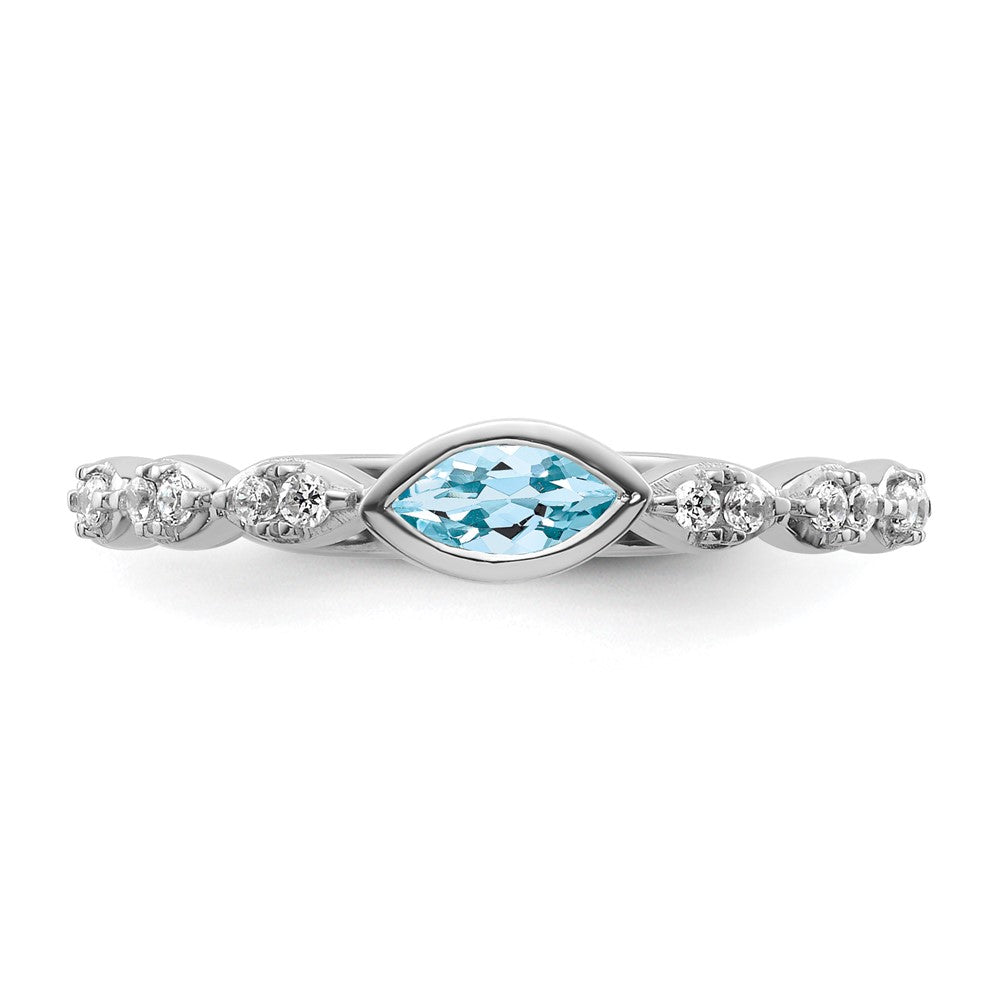 14k White Gold Stackable Expressions Aquamarine and Diamond Ring