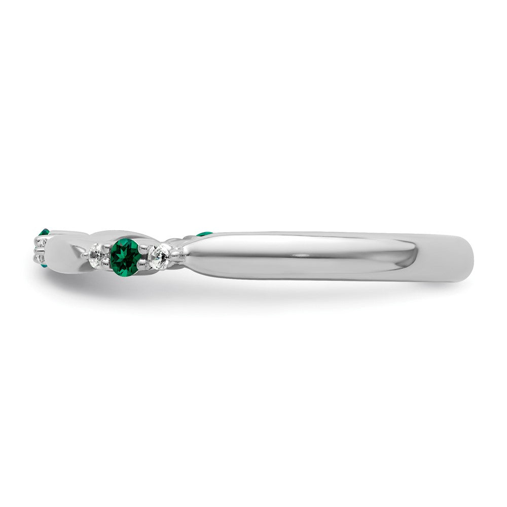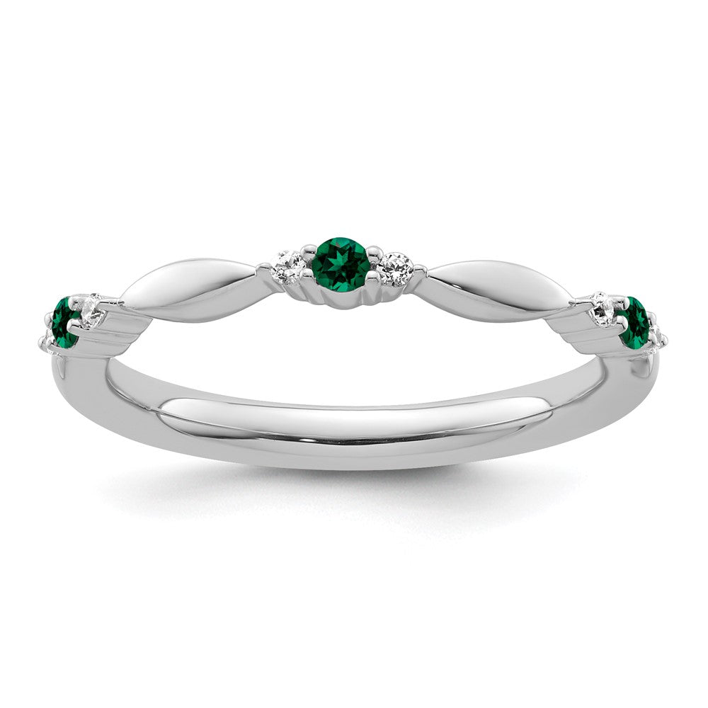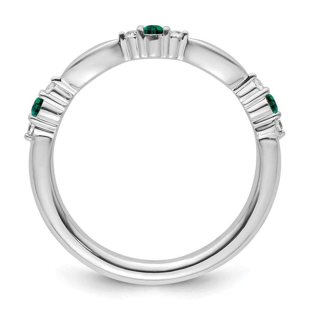 14k White Gold Stackable Expressions Created Emerald and Dia. Ring