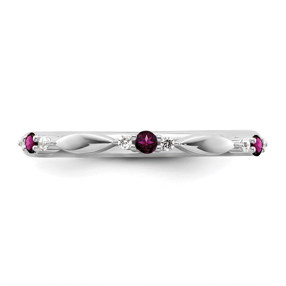 14k White Gold Stackable Expressions Rhodolite Garnet and Dia. Ring