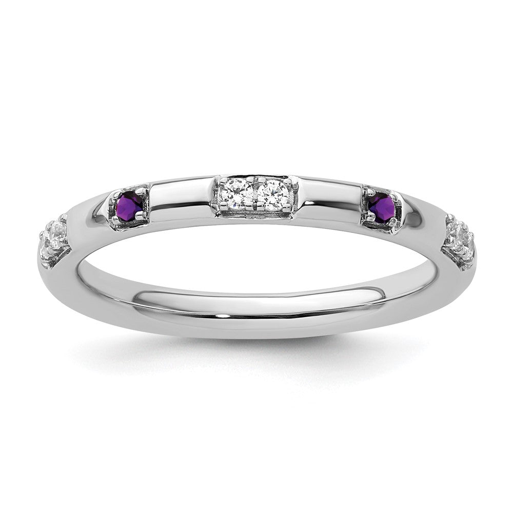 14k White Gold Stackable Expressions Amethyst and Diamond Ring