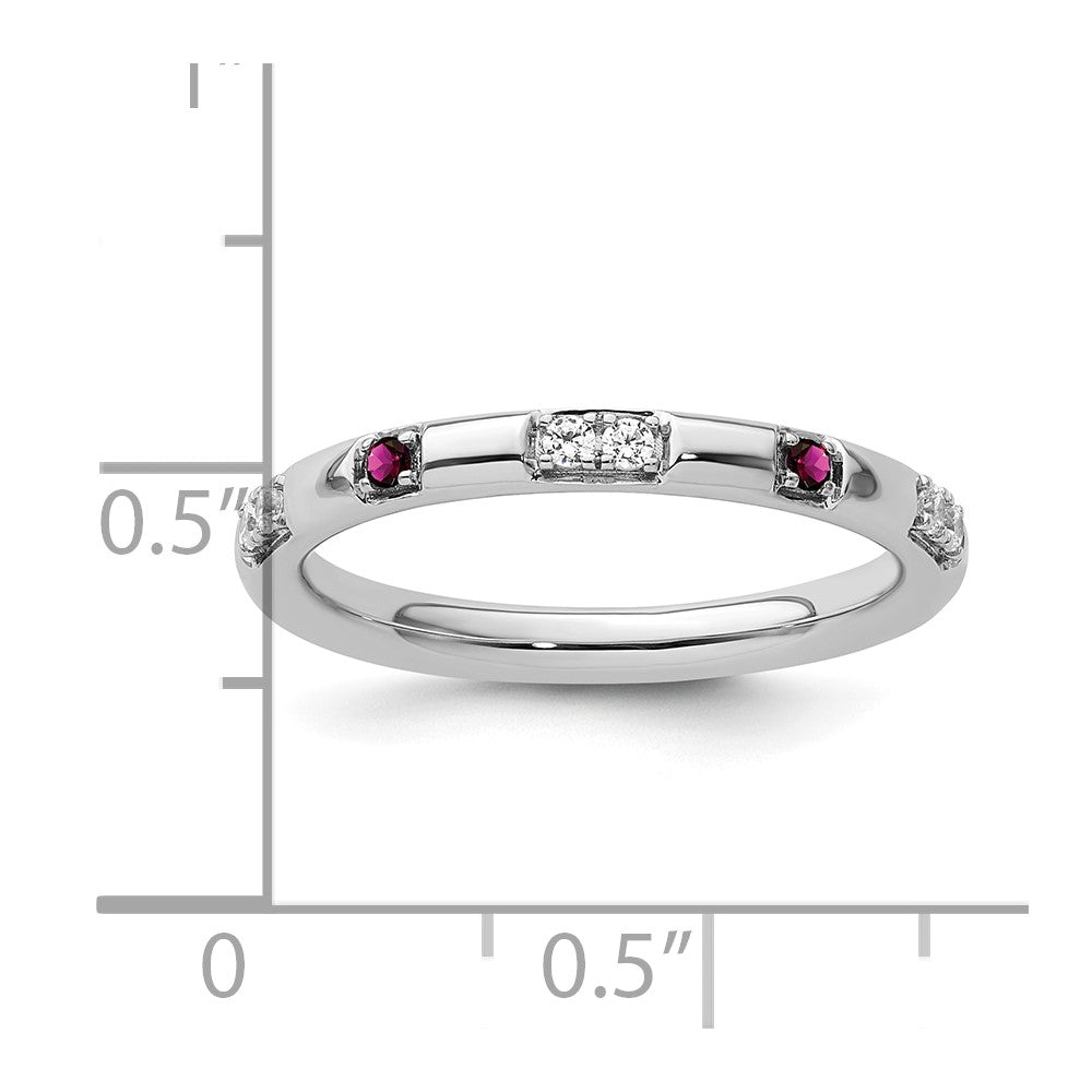 14k White Gold Stackable Expressions Rhodolite Garnet and Dia. Ring