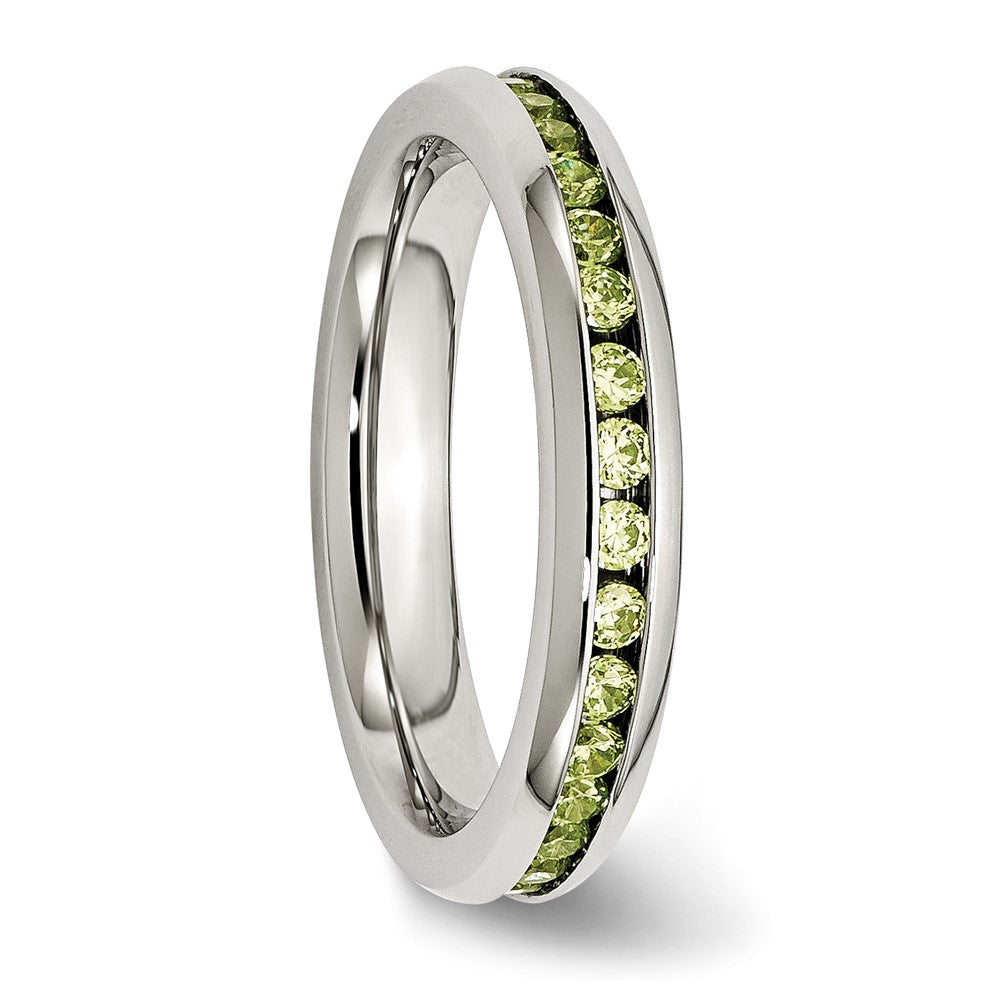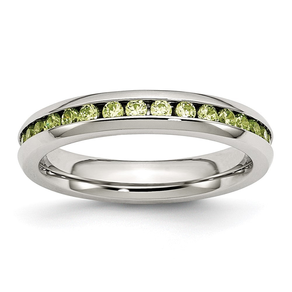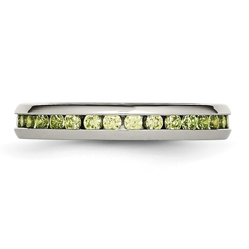 Chisel Stainless Steel Polished 4mm August Light Green CZ Ring