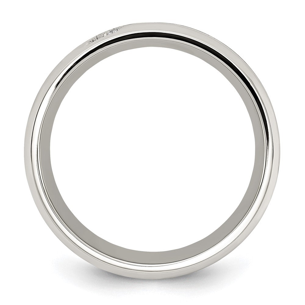 Chisel Stainless Steel Polsihed with Gray Carbon Fiber Inlay and CZ 8mm Band