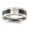 Chisel Stainless Steel Polished with Black Carbon Fiber Inlay CZ Cross 8mm Band