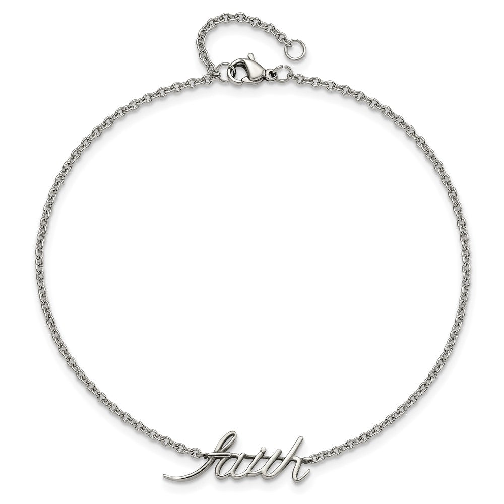 Chisel Stainless Steel Polished FAITH 9 inch Anklet Plus 1 inch Extension