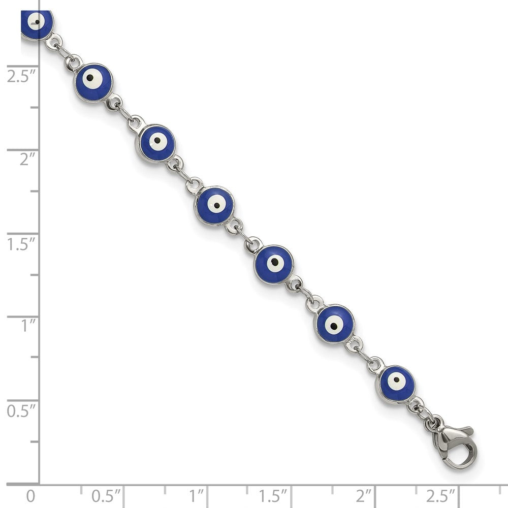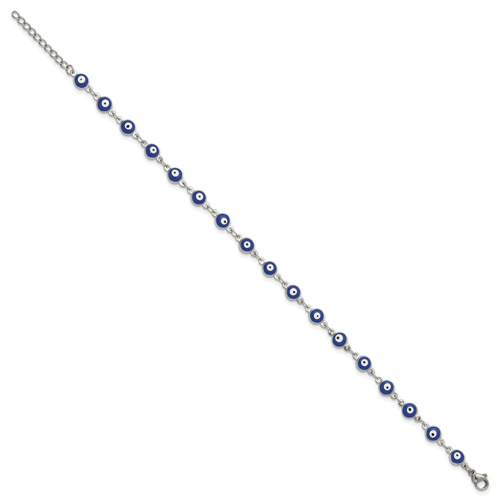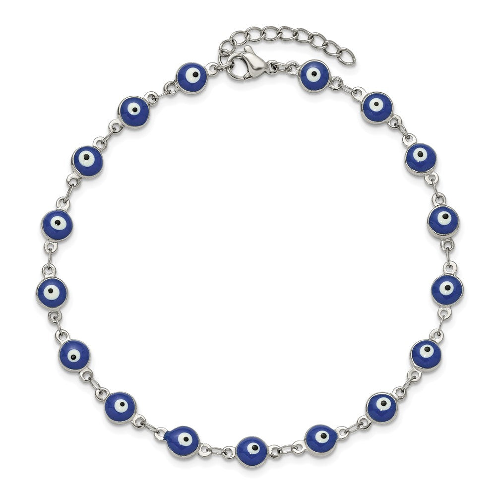Chisel Stainless Steel Polished with Blue Paint Inlay Evil Eye 9 inch Plus a 1 inch Extension Anklet