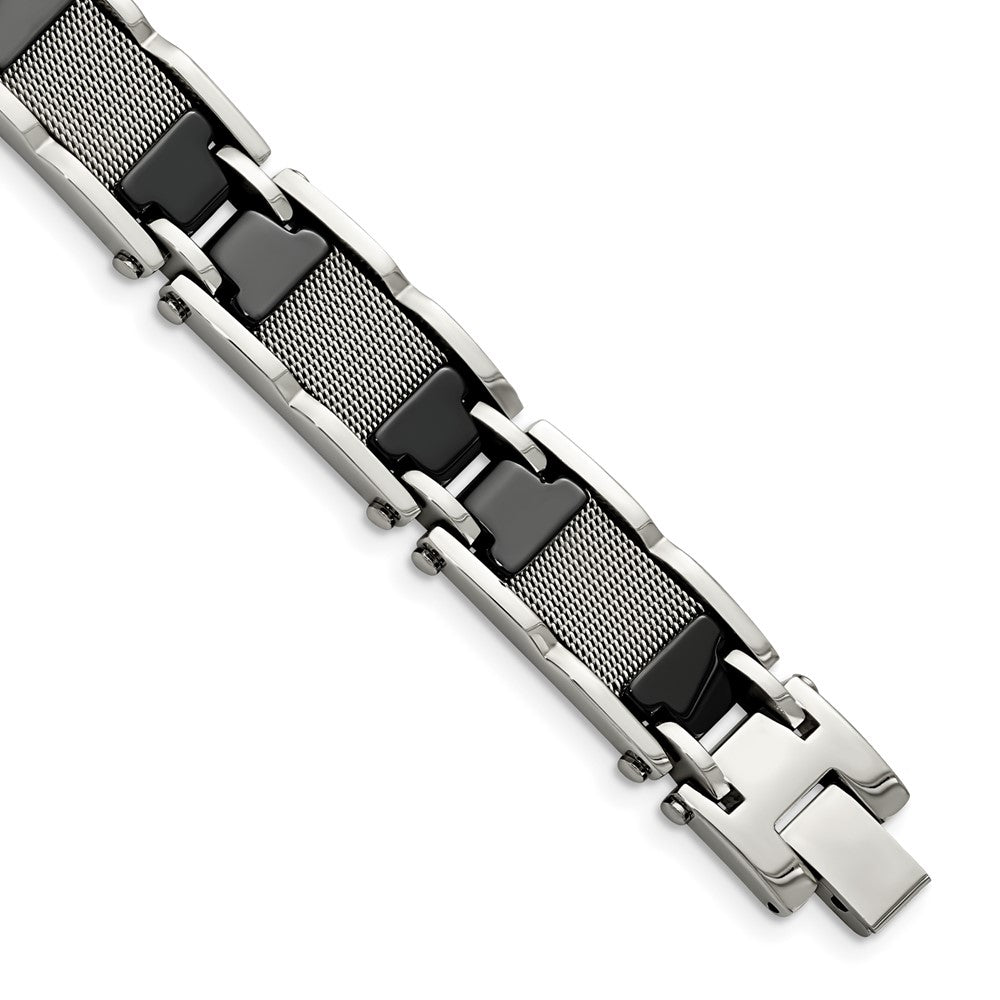 Chisel Stainless Steel Polished Mesh with Black Ceramic 8.25 inch Link Bracelet
