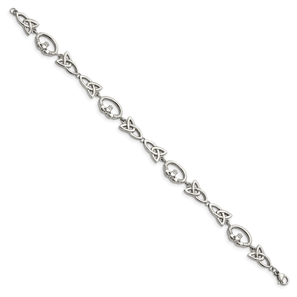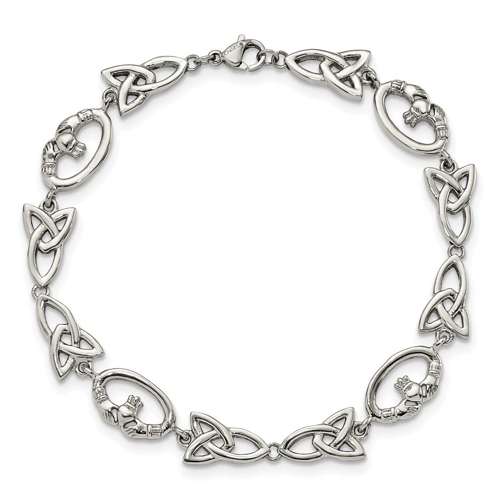 Chisel Stainless Steel Polished 7.75 inch Claddagh and Trinity Knot Bracelet