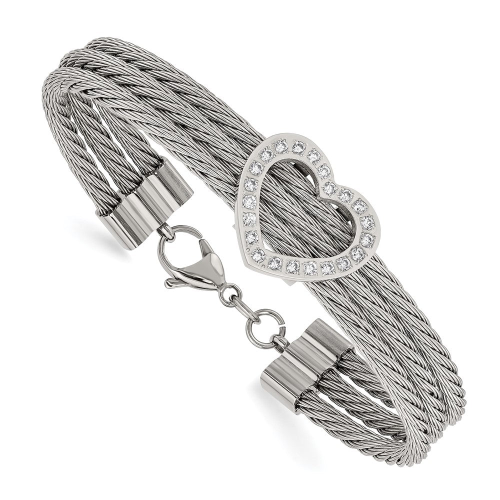 Chisel Stainless Steel Polished wire with CZ Heart 7.5 inch Bracelet