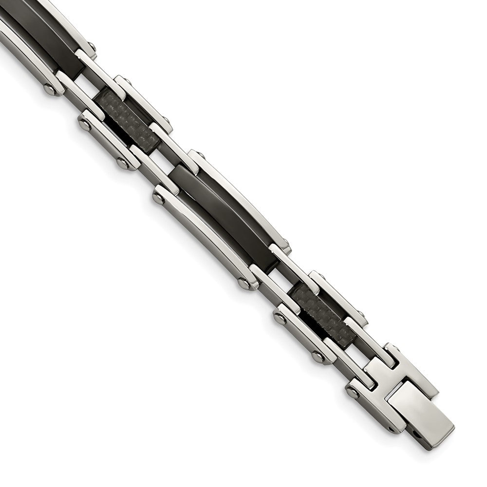 Chisel Stainless Steel Polished Black IP-plated with Solid Black Carbon Fiber 8.25 inch Link Bracelet