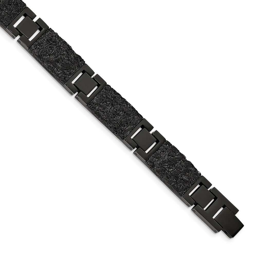 Chisel Stainless Steel Polished Black IP-plated Wire Inlay 8.5 inch Link Bracelet