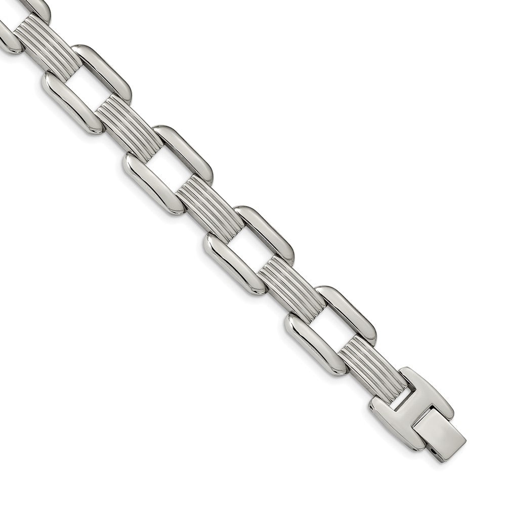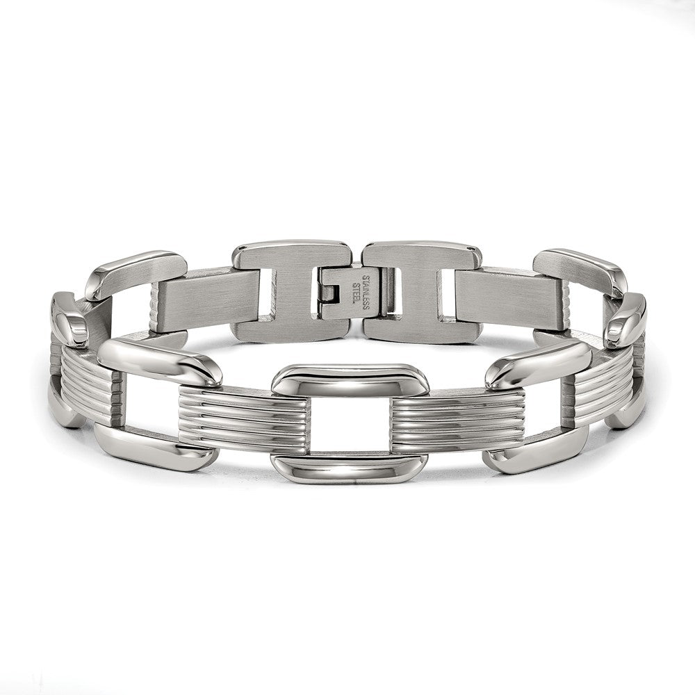 Chisel Stainless Steel Polished and Textured 8.5 inch Rounded Square Open Link Bracelet
