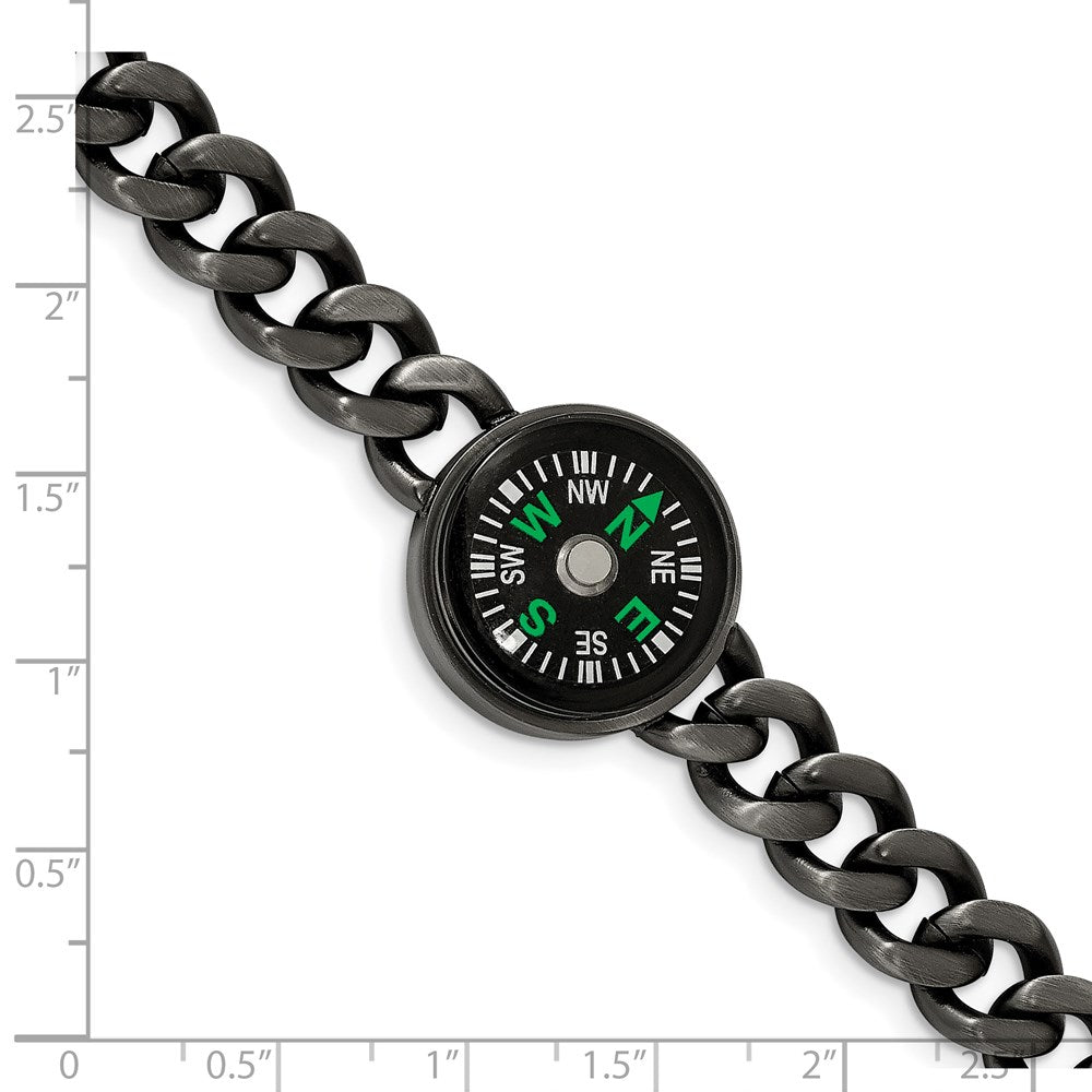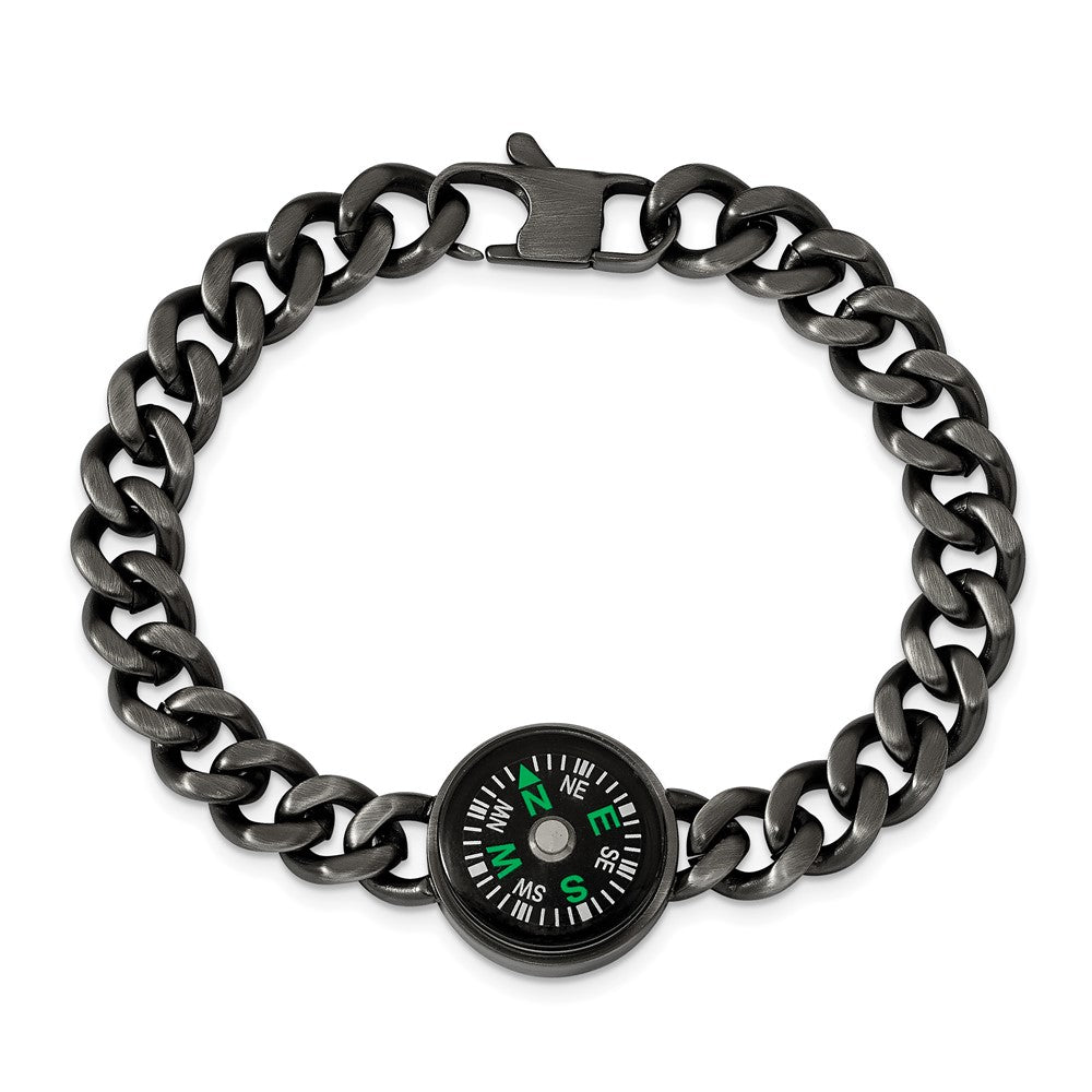 Chisel Stainless Steel Brushed Gun Metal IP-plated with Functional Compass 8.25 inch Bracelet
