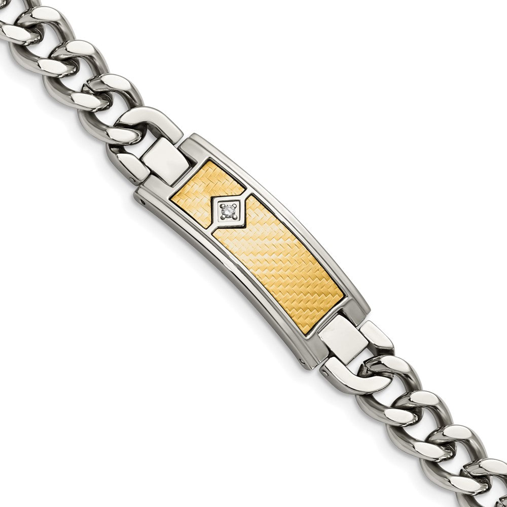 Chisel Stainless Steel Polished with 18k Gold Weave Texture and .05 carat Diamond 9 inch ID Bracelet