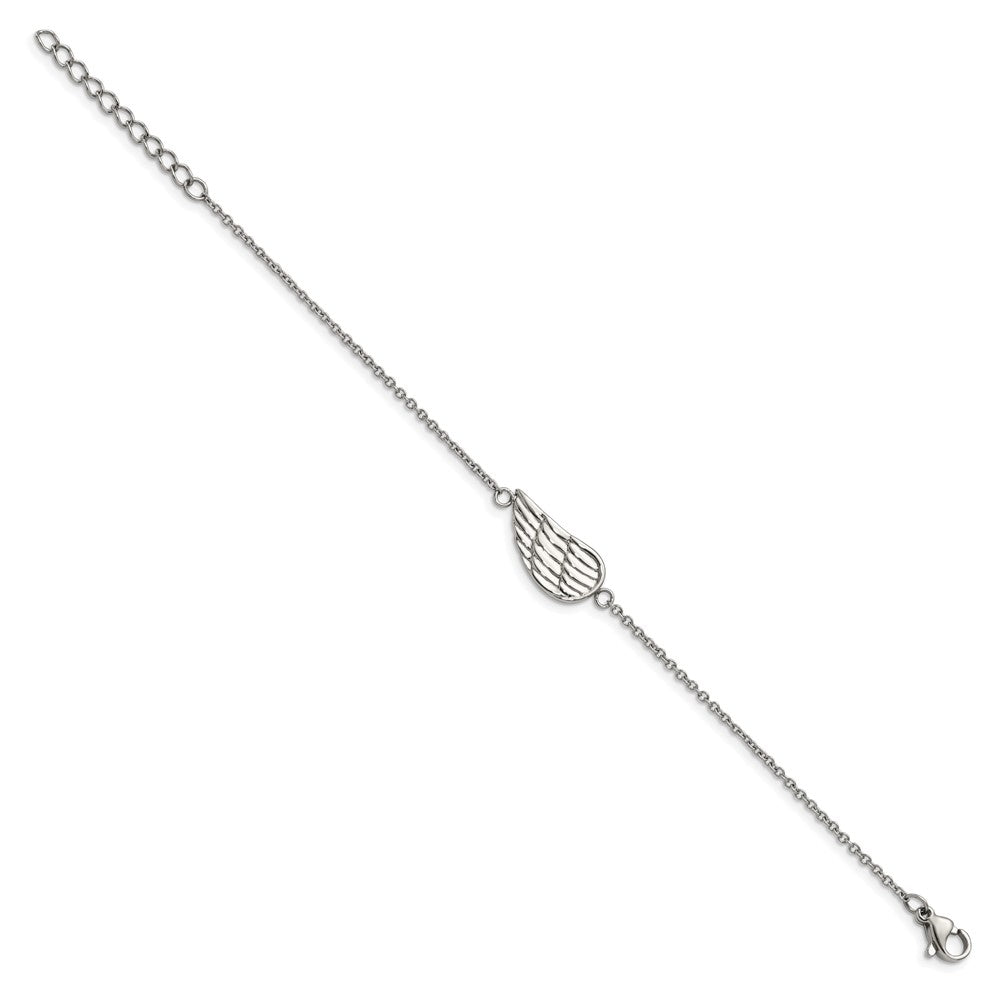 Chisel Stainless Steel Polished and Textured Angel Wing 6.25 inch Bracelet with 1.25 inch Extension