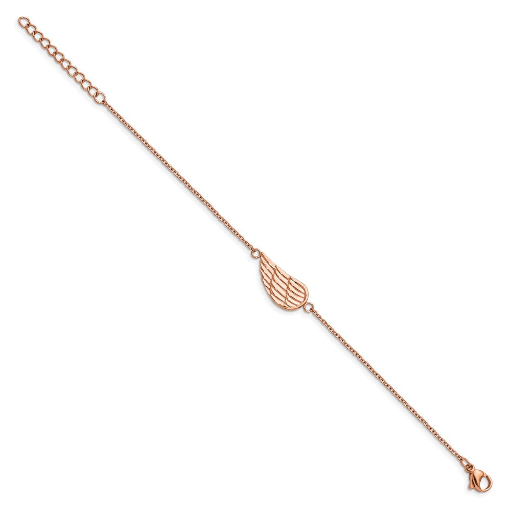 Chisel Stainless Steel Polished and Textured Rose IP-plated Angel Wing 6.25 inch Bracelet with 1.25 inch Extension