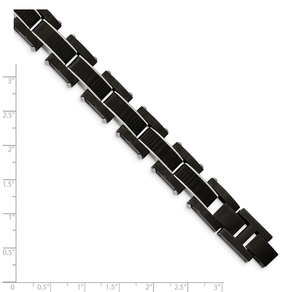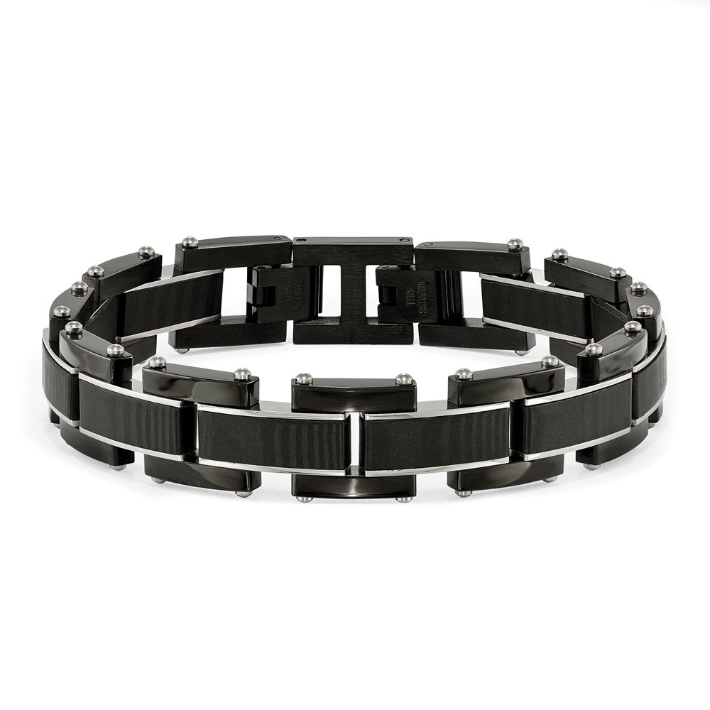 Chisel Stainless Steel Polished Black IP-plated with Solid Black Carbon Fiber 8.5 inch Link Bracelet