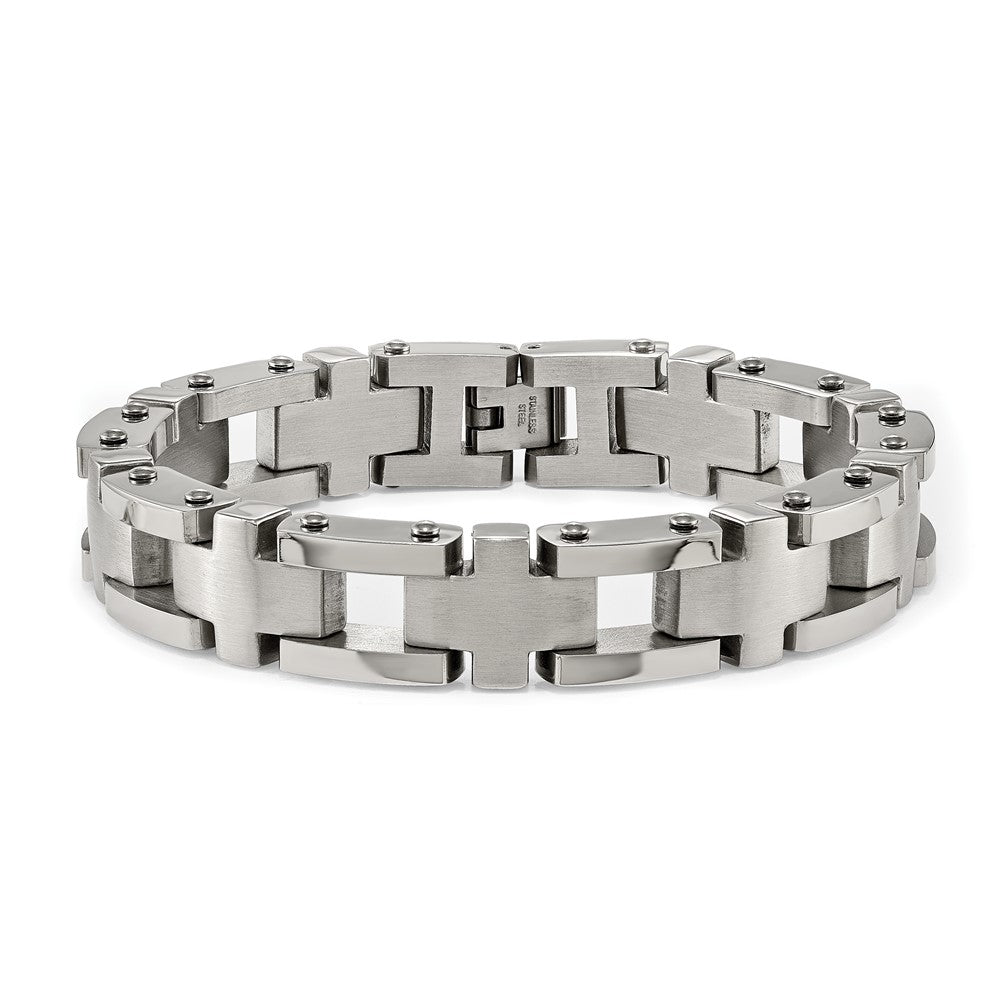 Chisel Stainless Steel Brushed and Polished 8.5 inch Open Cross Link Bracelet
