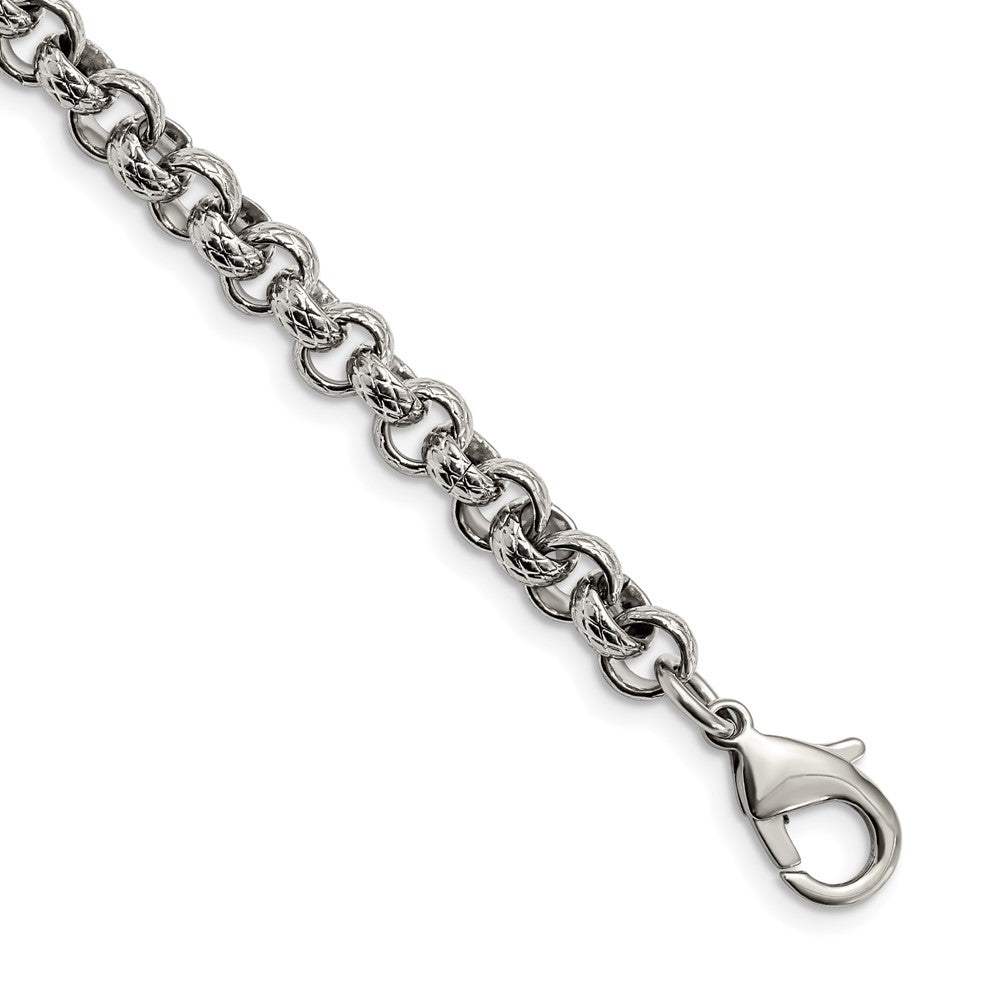 Chisel Stainless Steel Polished and Textured 8.25 inch Link Bracelet