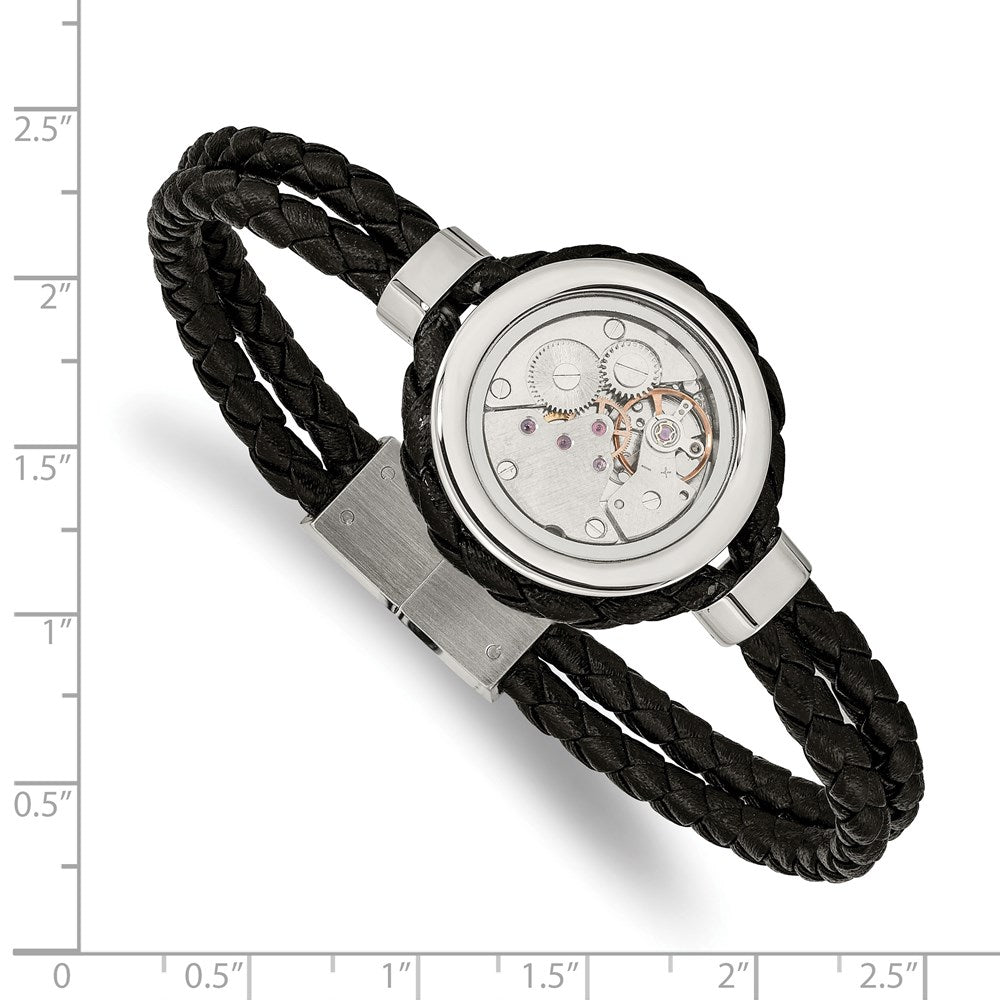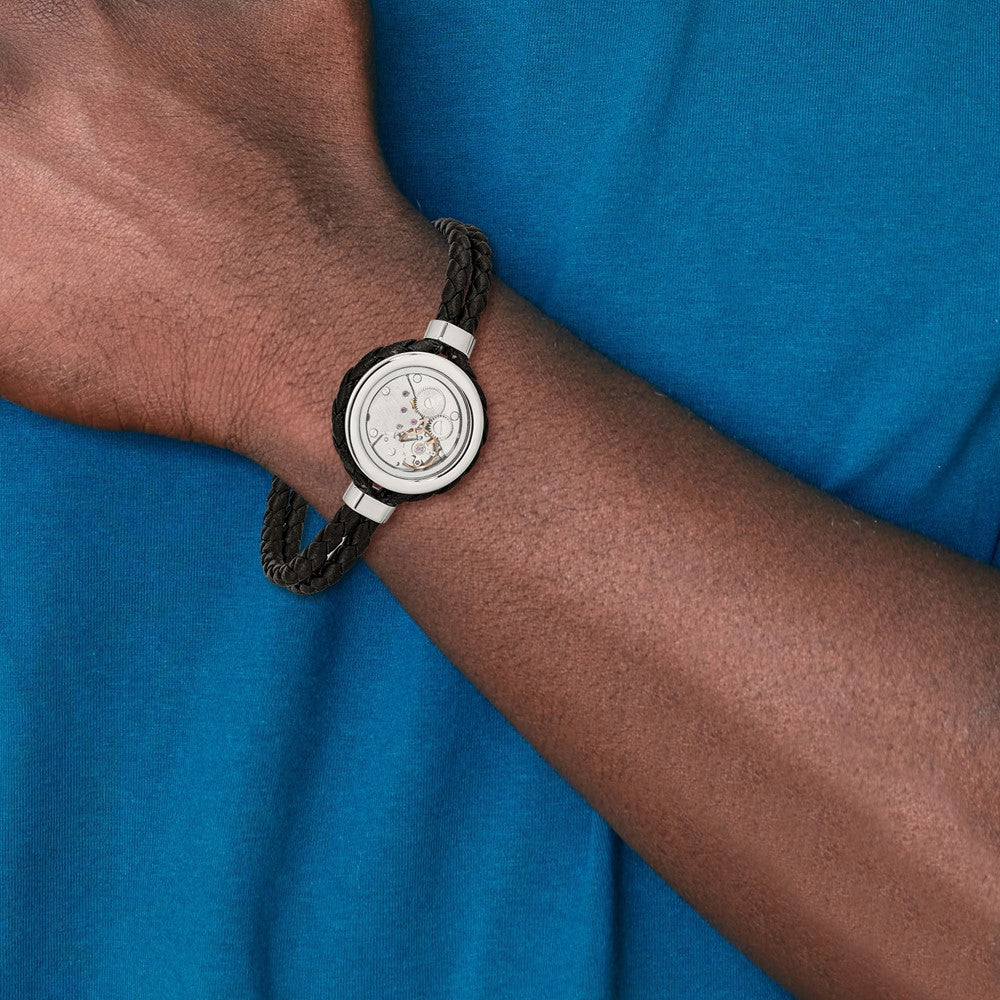 Chisel Stainless Steel Brushed and Polished Yellow IP-palted with CZ Black Braided Leather 8.5 inch Bracelet