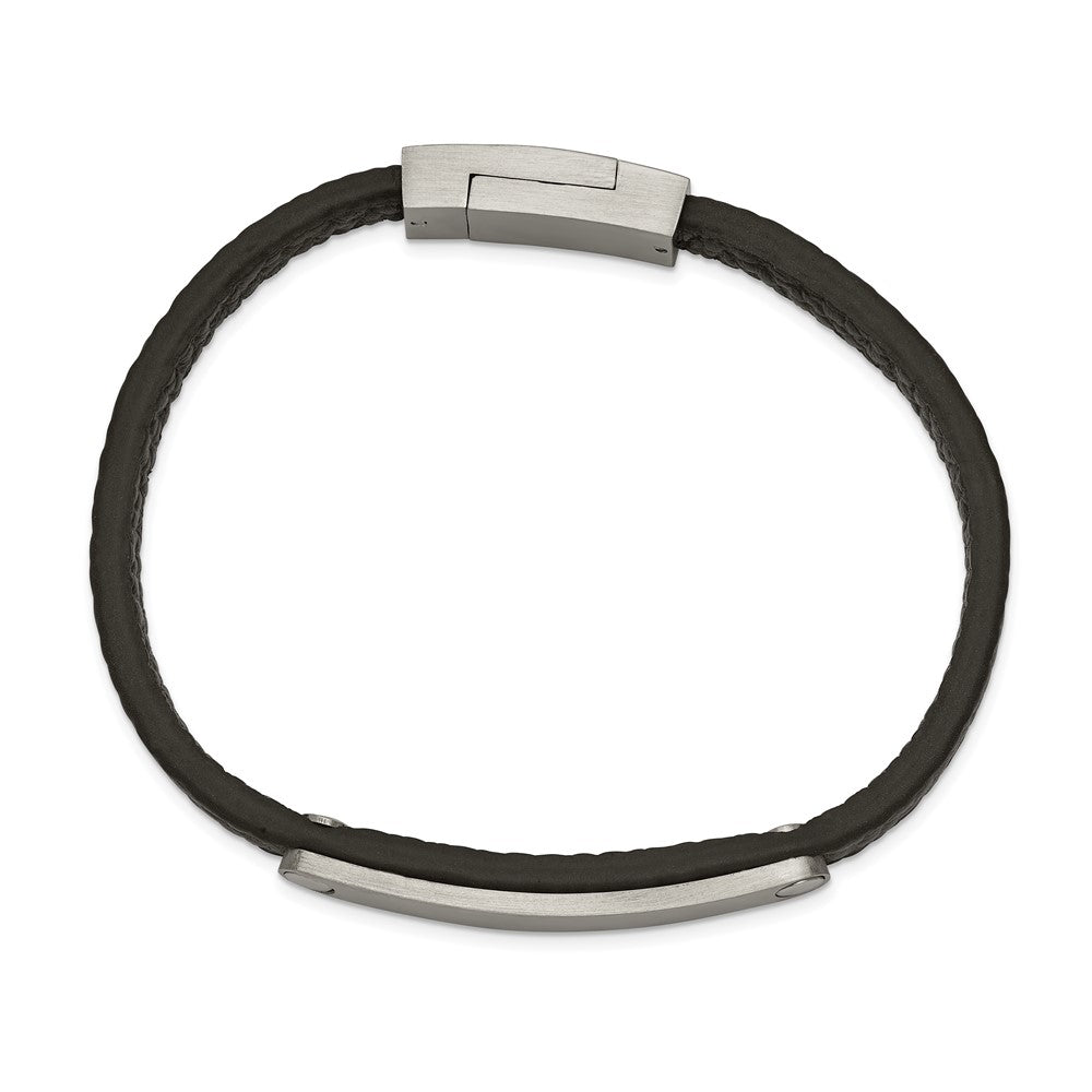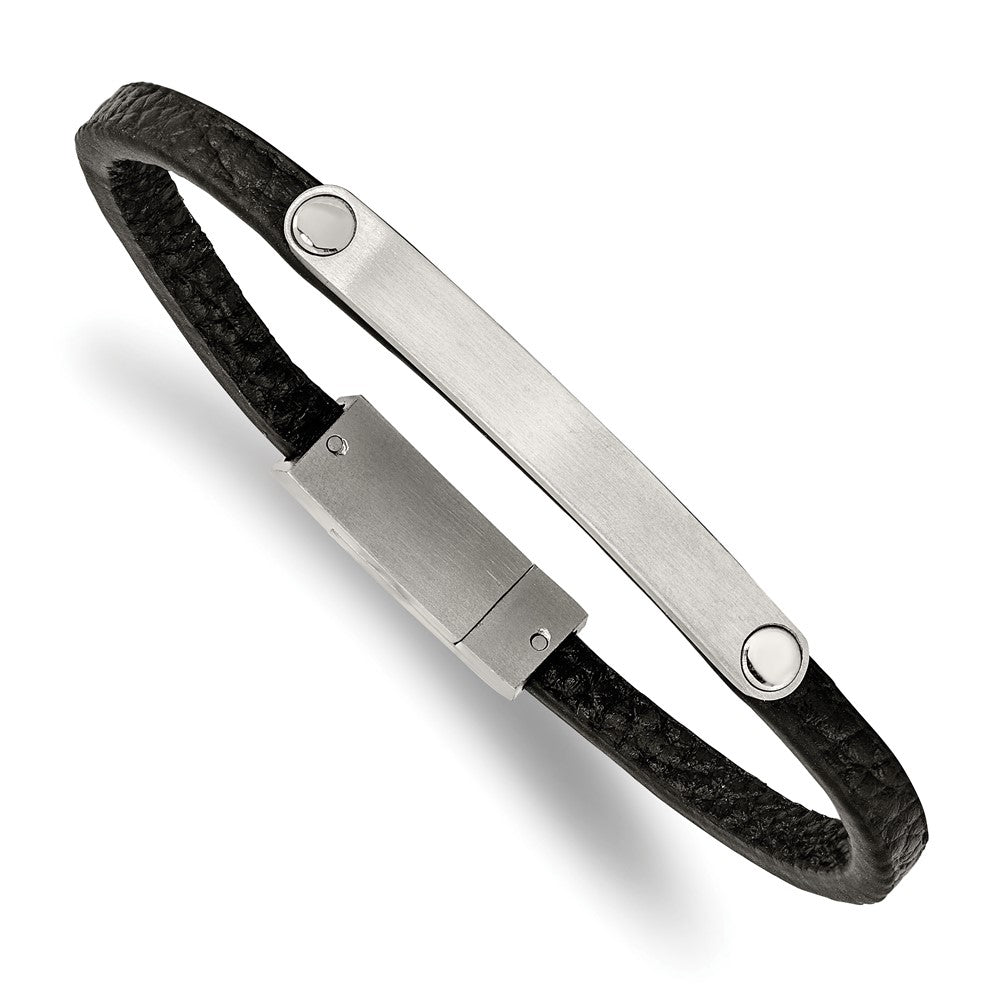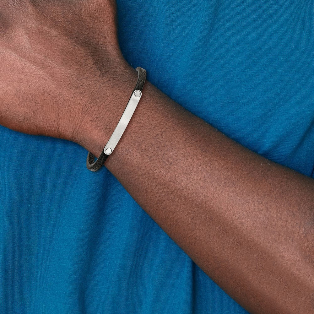 Chisel Stainless Steel Brushed Black Leather 8.25 inch ID Bracelet