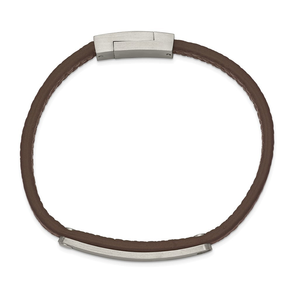 Chisel Stainless Steel Brushed Brown Leather 8.25 inch ID Bracelet