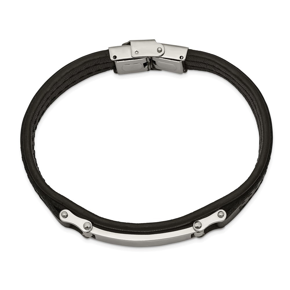 Chisel Stainless Steel Polished Black Leather 8.25 inch ID Bracelet