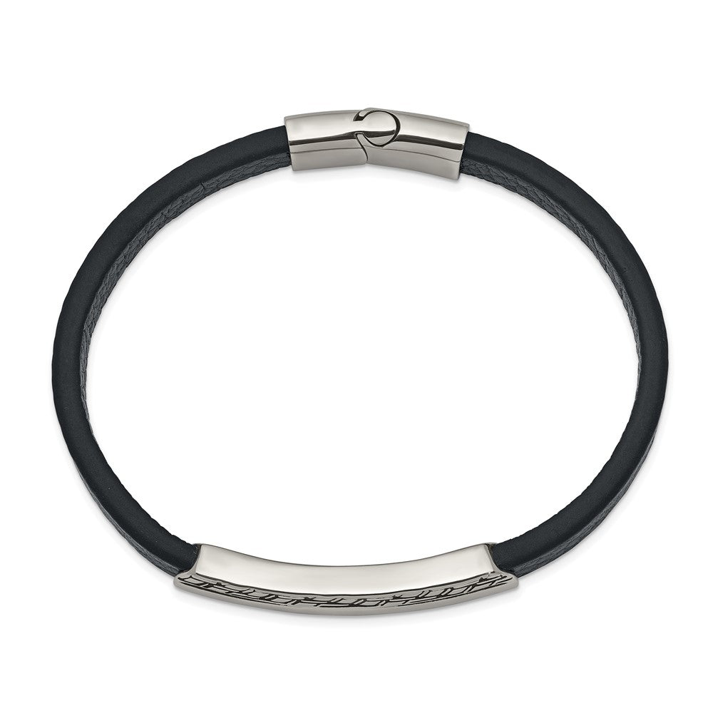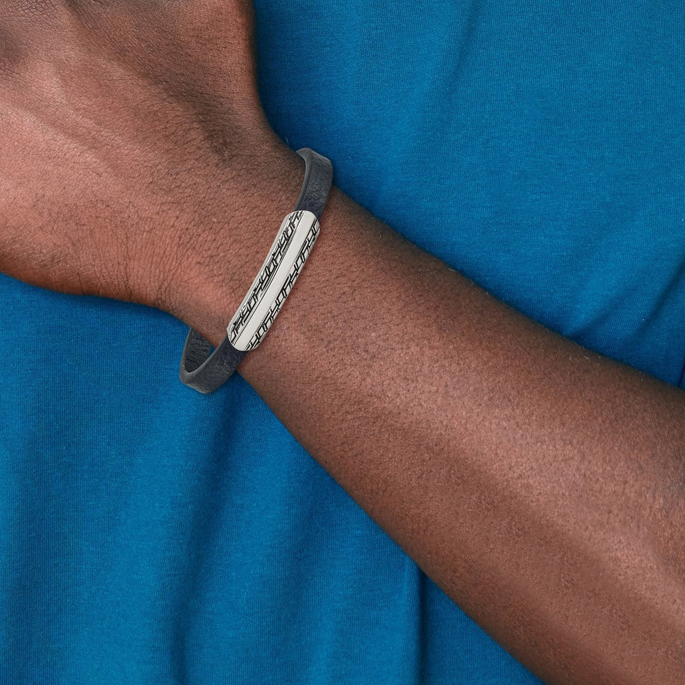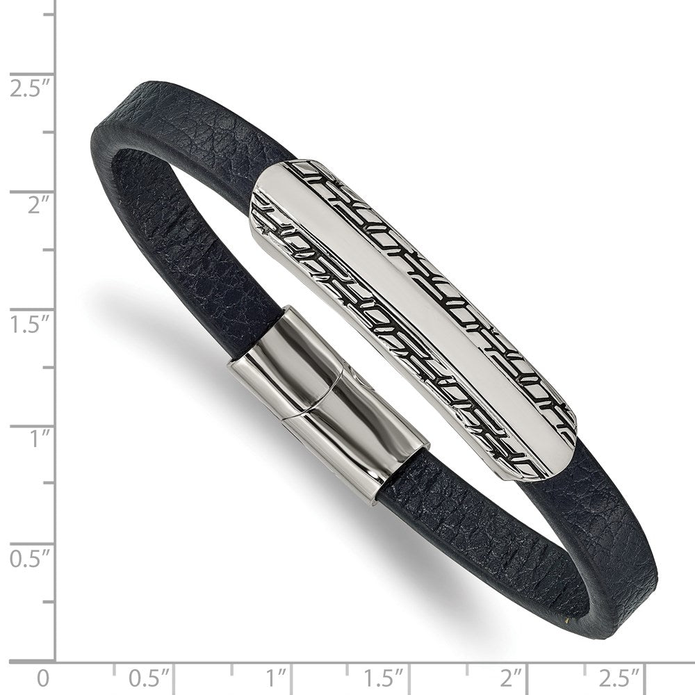 Chisel Stainless Steel Antiqued and Polished Navy Blue Leather 8.25 inch Bracelet
