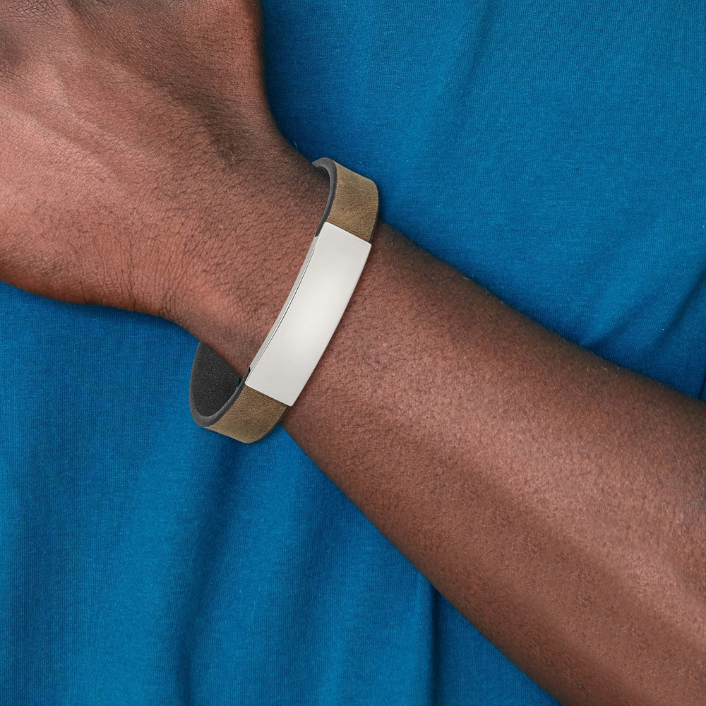 Chisel Stainless Steel Polished Black and Brown Leather 8.25 inch ID Bracelet
