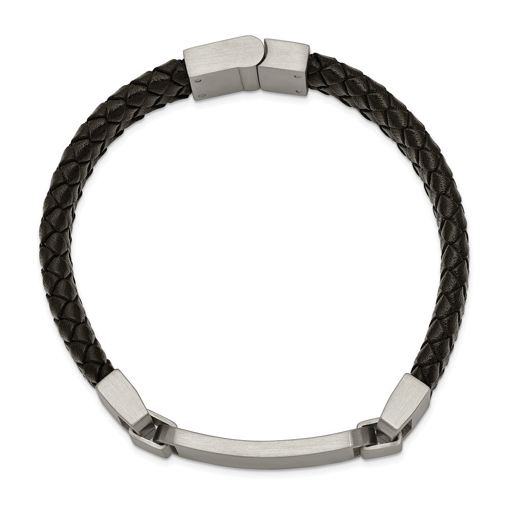 Chisel Stainless Steel Brushed Black Leather 8.5 inch ID Bracelet