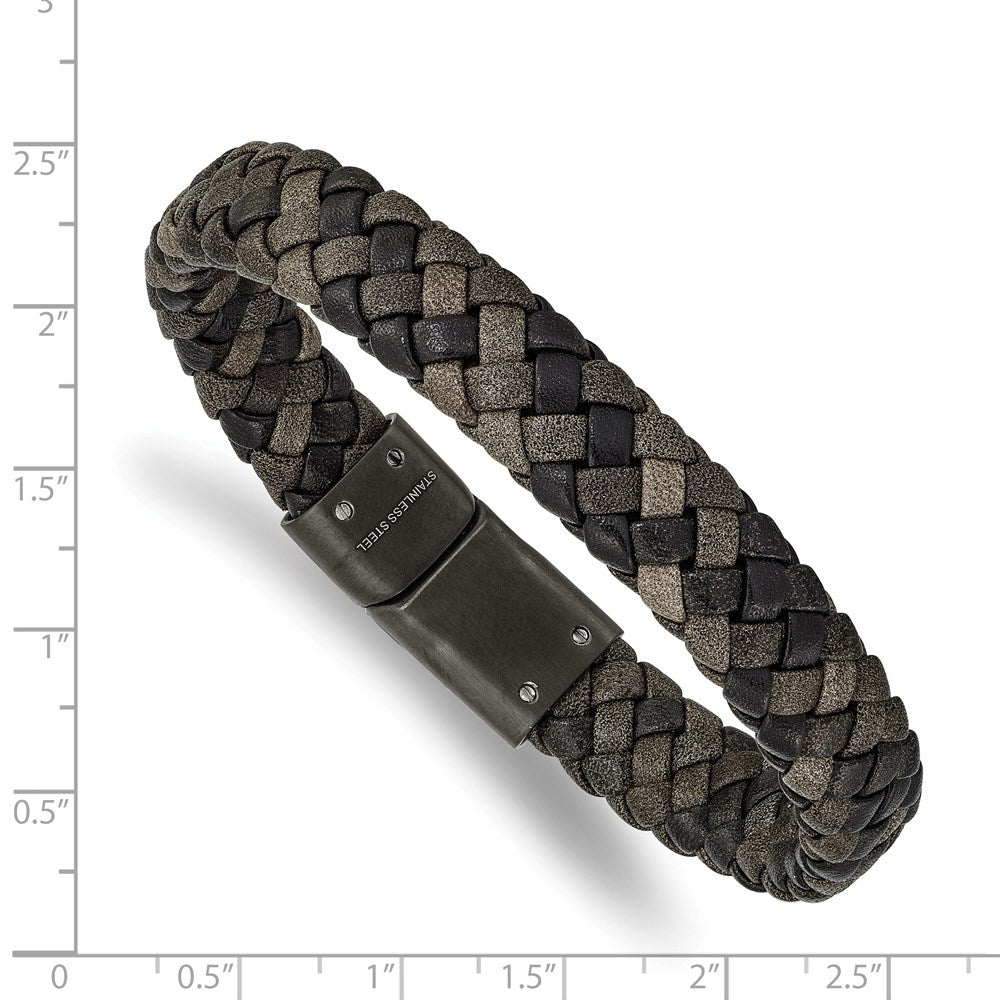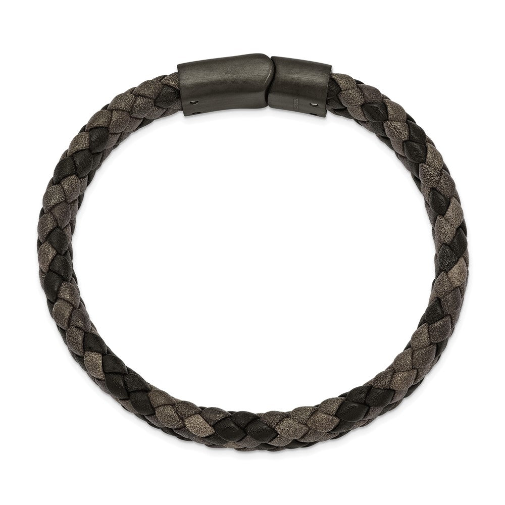 Chisel Stainless Steel Brushed Gun Metal IP-plated Brown Braided Leather 8.25 inch Bracelet