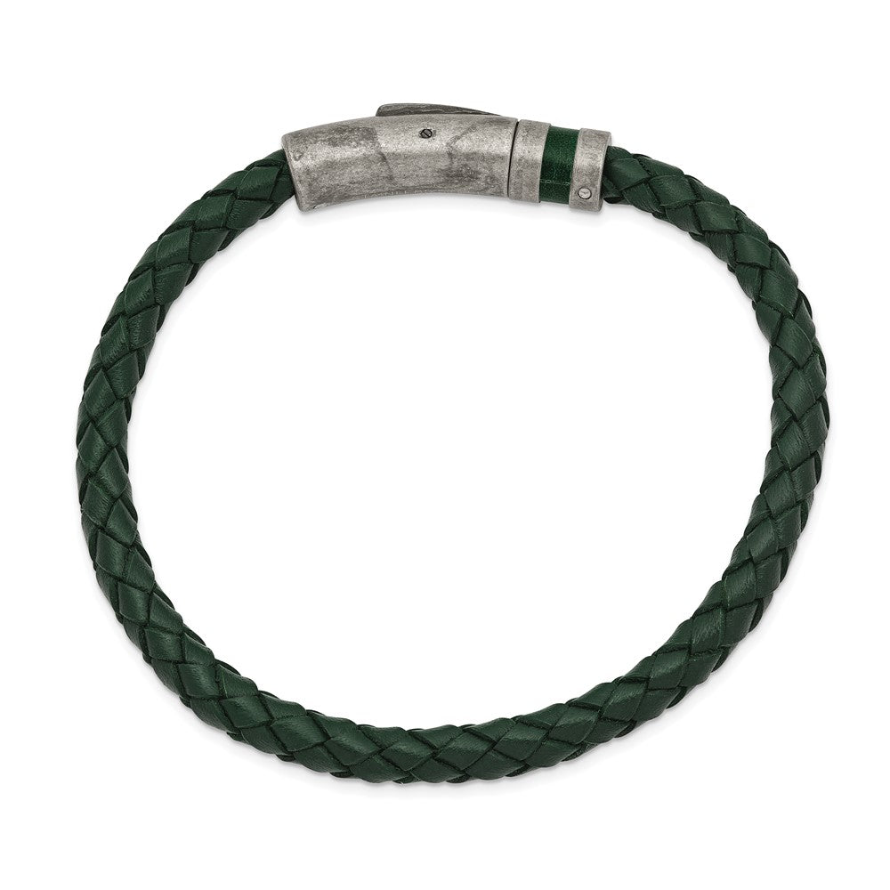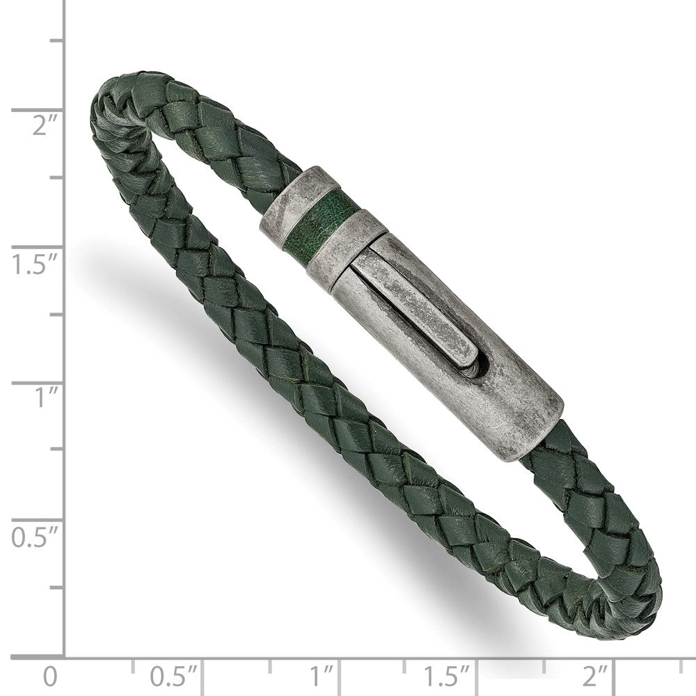 Chisel Stainless Steel Antiqued Green Braided Leather 8.25 inch Bracelet