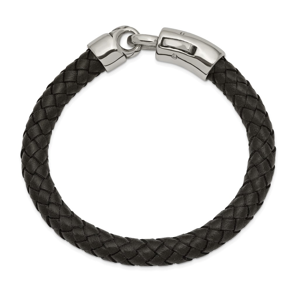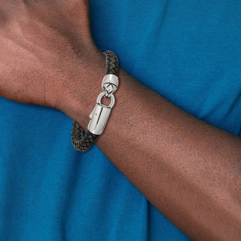 Chisel Stainless Steel Antiqued and Polished Black Braided Leather 8.25 inch Bracelet
