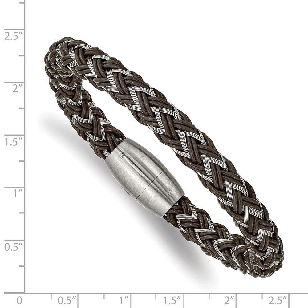 Chisel Stainless Steel Brushed Braided Wire and Brown Rubber 8.5 inch Bracelet