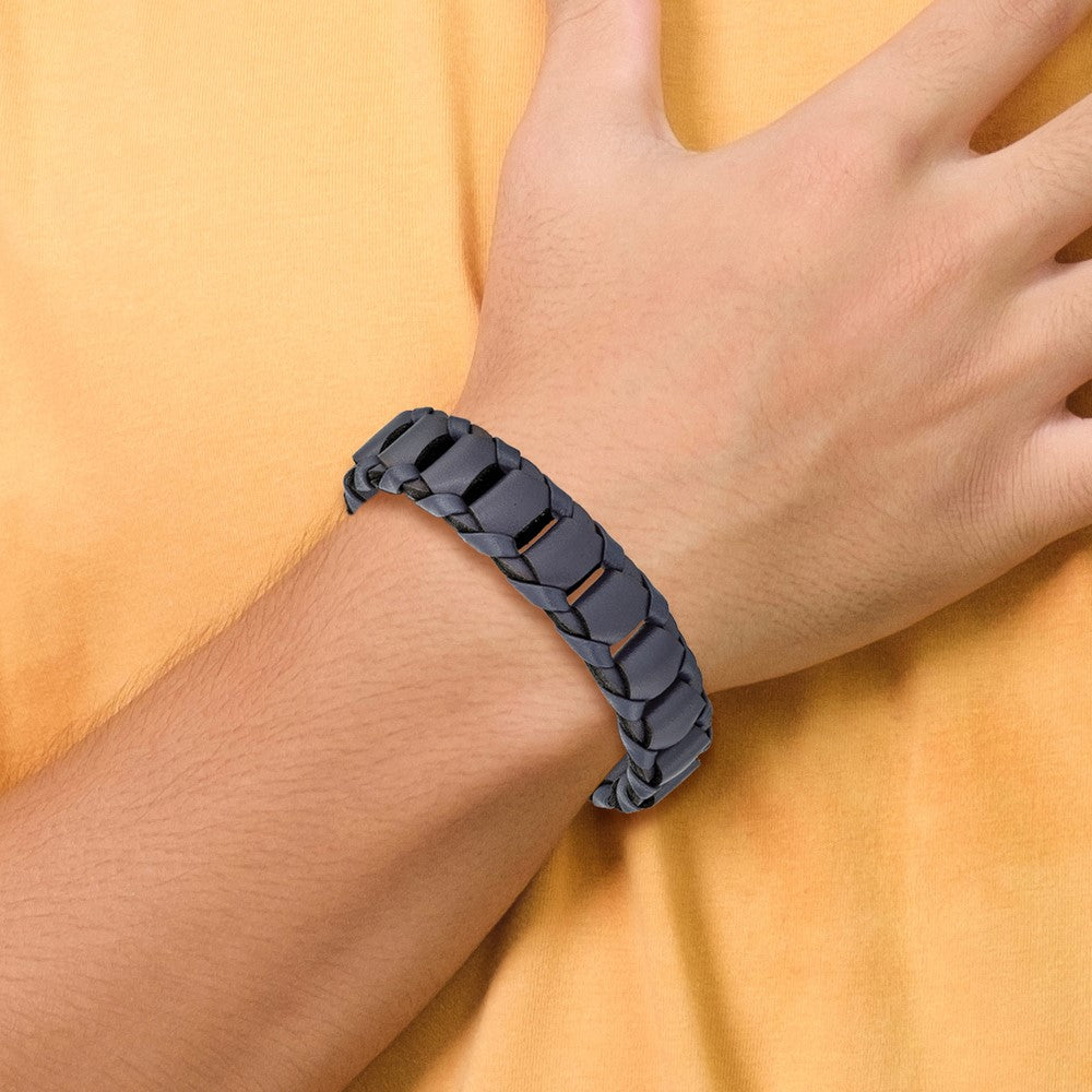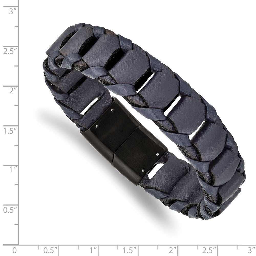 Chisel Stainless Steel Brushed Black IP-plated Blue Leather 8.5 inch Bracelet