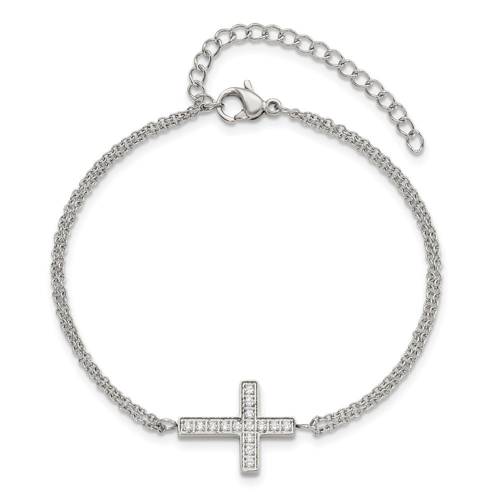 Chisel Stainless Steel Polished CZ Sideways Cross 6.25 inch Bracelet with 2 inch Extension