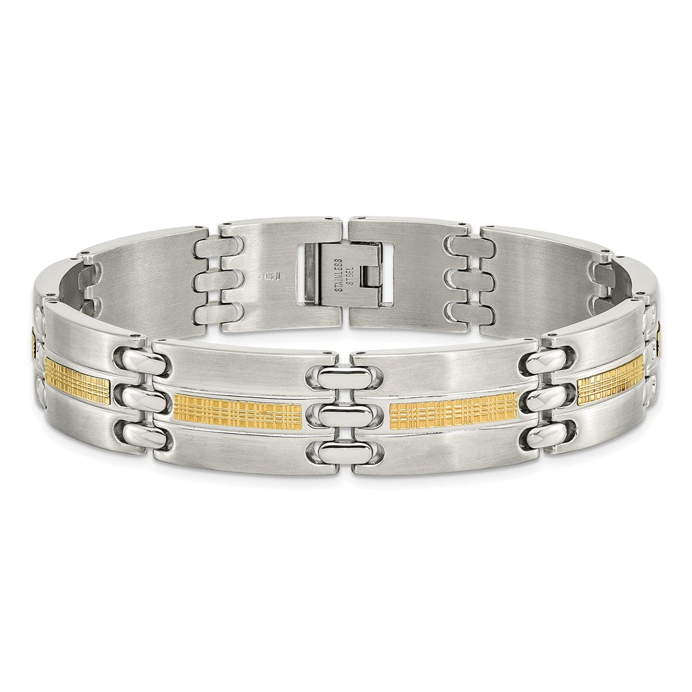 Chisel Stainless Steel with 14k Gold Accent Brushed and Polished 8.5 inch Link Bracelet