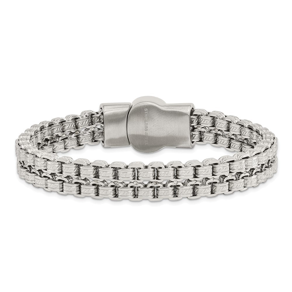 Chisel Stainless Steel Polished and Textured 8.75 inch Double Rolo Link Bracelet