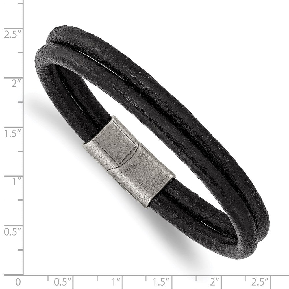 Chisel Stainless Steel Antiqued 2 Strand Black Leather 8.25 inch Bracelet